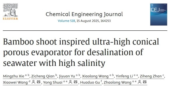 竹笋启发的超高效太阳能蒸发器:突破高盐度海水淡化瓶颈