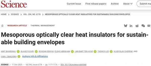 Science正刊:隐形(可见光透明)隔热材料,有望替代窗户玻璃实现高效节能