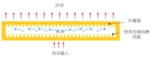 VC均热板通过真空密封腔体内的液体-蒸气相变实现二维平面传热。